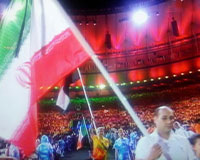 ابتدا پرچمداران وارد شدند و داود علی پوریان، کاپیتان تیم ملی والیبال نشسته کشورمان، پرچم ایران را درحالی حمل کرد که نوار مشکی آن تاسف کاروان منا را به دلیل درگذشت بهمن گلبارنژاد، دوچرخه سوار کشورمان نشان می داد.