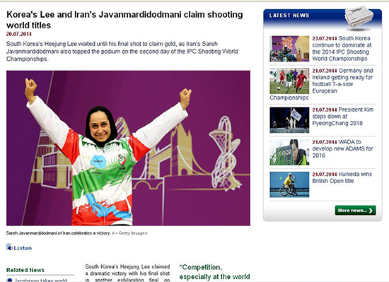 کمیته بین المللی پارالمپیک در صفحه اصلی سایت خود به تمجید از شاهکار بزرگ ساره جانمردی بانوی تیرانداز ایرانی پرداخت .